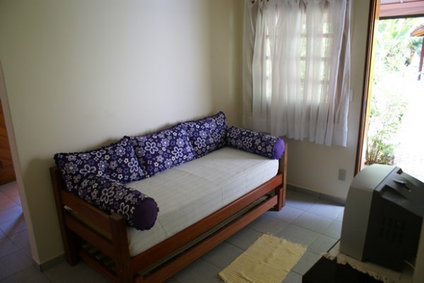 Capacidade para 6 pessoas (Família com filhos), quarto com Ar condicionado, Sala com Bicama e ventilador de teto, Cozinha com geladeira, fogão e utensílios, rede, TV, coz.americana e forno micro ondas