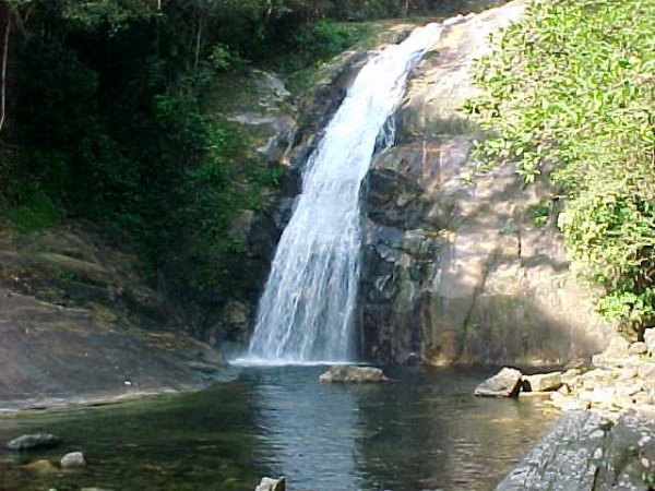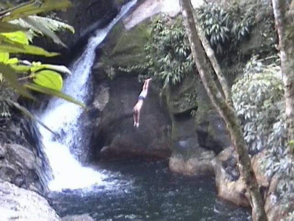 Belíssima piscina natural, ótima para snorking, com tobogã e trampolim de vários níveis da cachoeira, também chamada de Cachoeira da Samambaia.